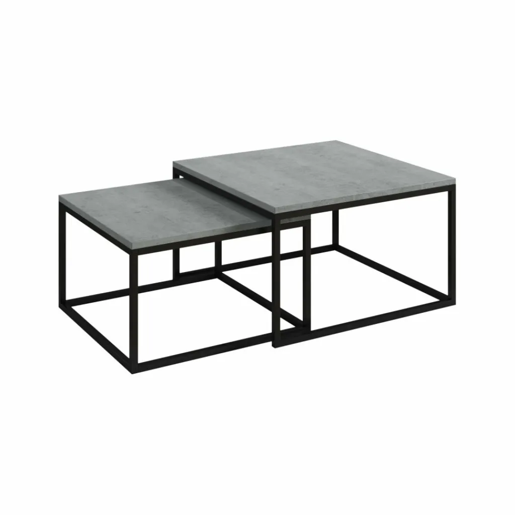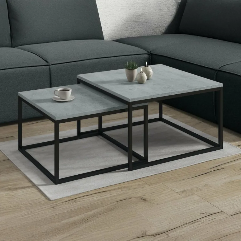 Salontafel Styler is een set van 2 salontafels in matchend design. De set bestaat uit 2 salontafels in verschillende formaten die gemakkelijk in elkaar kunnen worden geschoven wanneer er ruimte gemaakt moet worden. Het bovenblad van de Styler is uitgevoerd in betonlook kleur met een eiken structuur en de tafels staan op een stevig metalen frame, wat zorgt voor een stoere en moderne uitstraling.