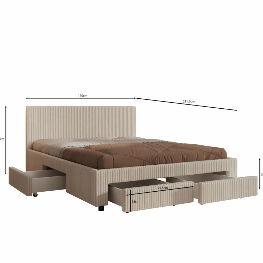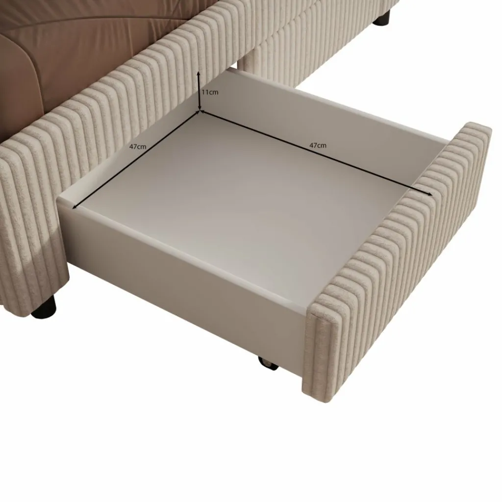 Onder het bed bevinden zich 4 praktische lades waarin je gemakkelijk dekens, kleding of accessoires kunt opbergen. Dit maakt het Suente bed niet alleen comfortabel om in te slapen, maar ook bijzonder functioneel. De maat van 160×200 cm biedt voldoende ruimte voor twee personen, perfect voor wie graag iets compacter slaapt zonder comfort te verliezen.