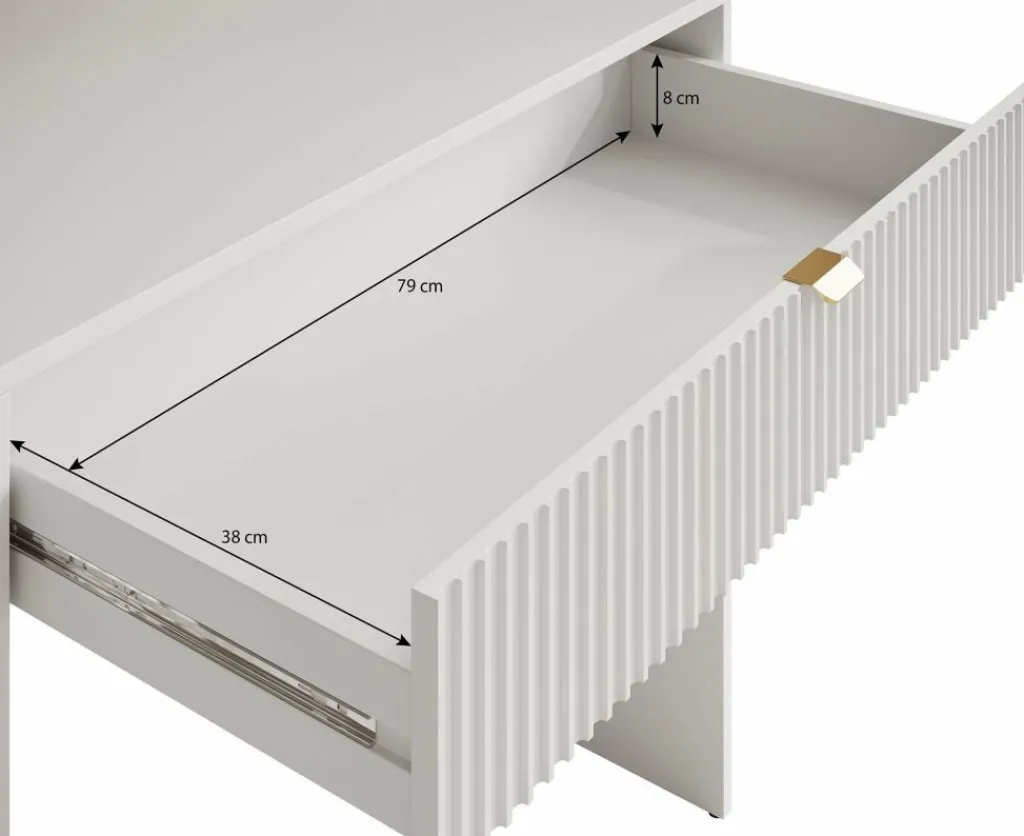 Met een breedte van 120 cm en diepte van 55 cm biedt Tavares een royaal werkblad, terwijl de hoogte van 76 cm zorgt voor comfortabel gebruik – perfect als make-uptafel of stijlvolle werkplek.