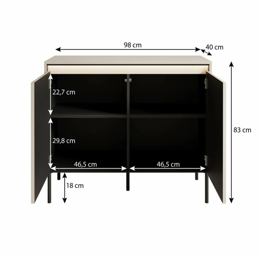 Bovendien is het dressoir uitgerust met geïntegreerde ledverlichting, die zorgt voor een sfeervol accent en het bovenblad extra geschikt maakt voor decoratie.