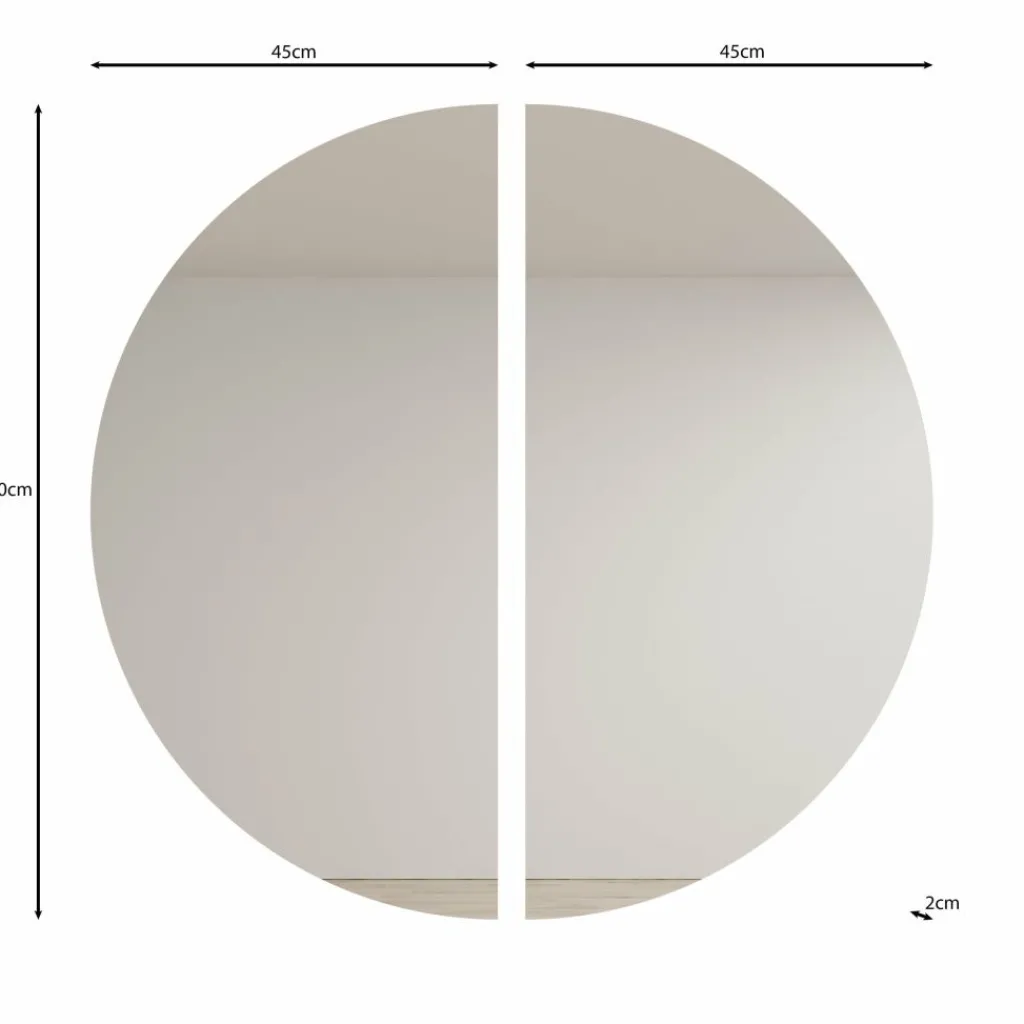 De spiegel bestaat uit twee losse delen van ieder 45×90 cm, die samen een elegante en symmetrische uitstraling creëren. Met deze afmetingen past de Timoteo perfect in de hal, slaapkamer of woonkamer, waar hij zowel praktisch als decoratief tot zijn recht komt.