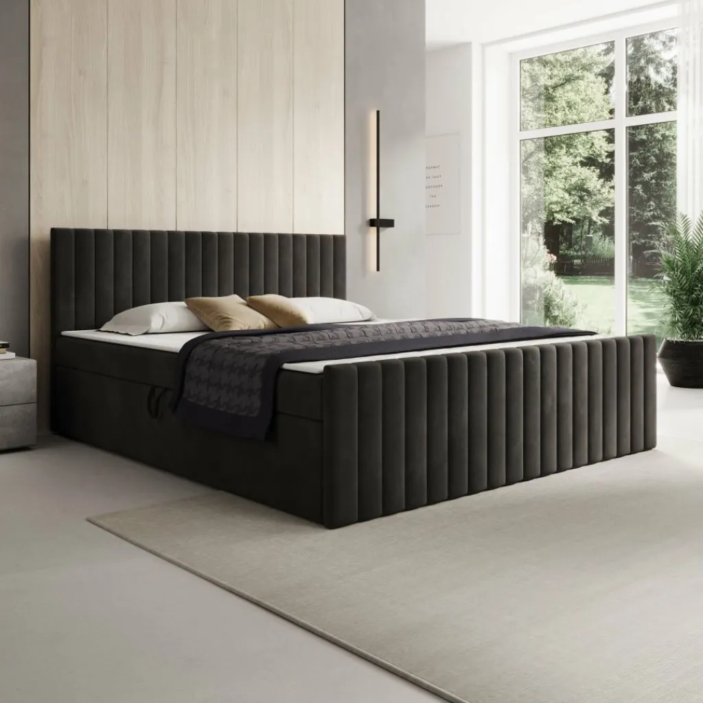 De zwarte uitvoering geeft het bed een krachtig en rustig geheel dat makkelijk te combineren is met lichte of donkere slaapkamermeubels. De Tori boxspring is verkrijgbaar in meerdere maten en kleuren, zodat je eenvoudig een variant kiest die past bij jouw slaapkamer en gewenste comfortniveau.