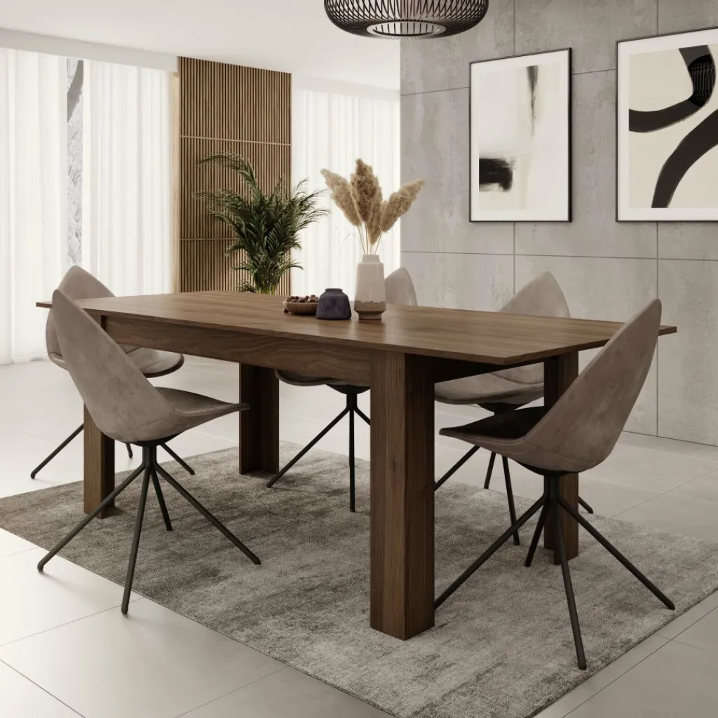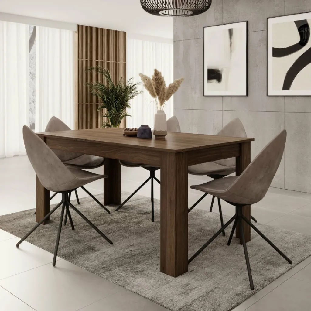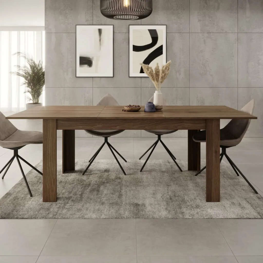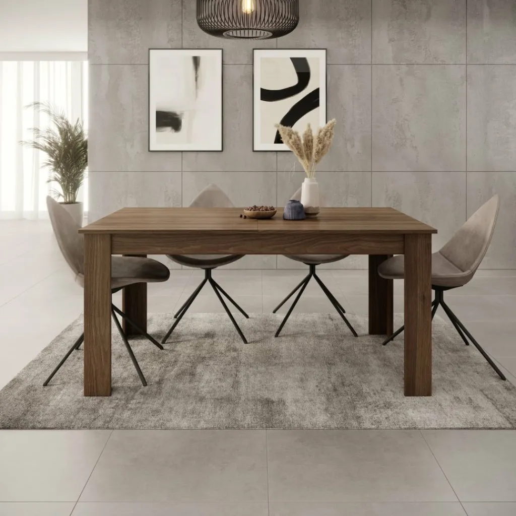 Eetkamertafel Uverta is een rechthoekige tafel uitgevoerd in een donker eiken kleur. De eettafel is uitschuifbaar van 160 cm naar 220 cm. Hierdoor is de tafel geschikt voor 6 tot 8 personen. De tafel heeft een modern design en staat op 4 poten.