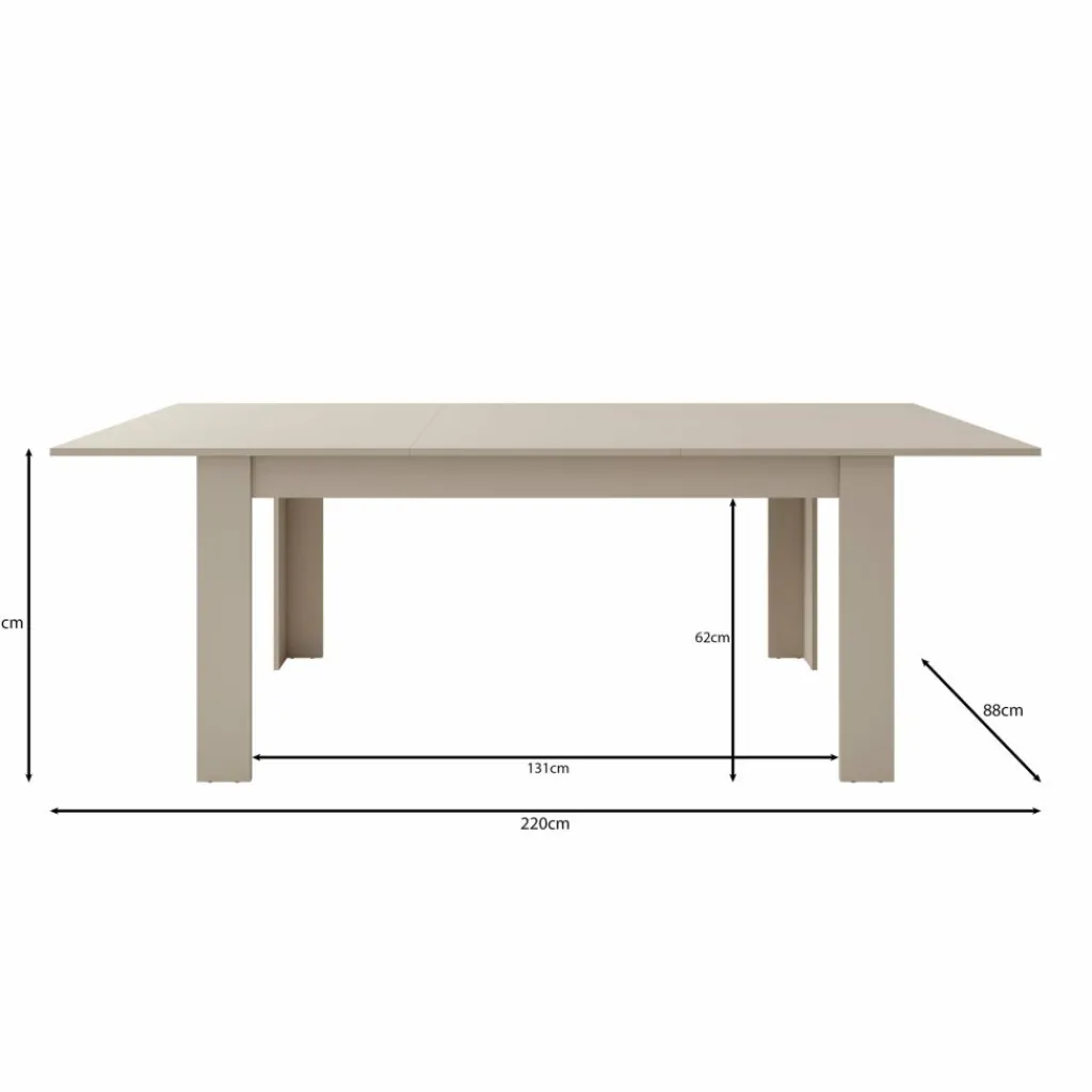 Eetkamertafel Uverta is een rechthoekige tafel uitgevoerd in een beige kleur. De eettafel is uitschuifbaar van 160 cm naar 220 cm. Hierdoor is de tafel geschikt voor 6 tot 8 personen. De tafel heeft een modern design en staat op 4 poten.