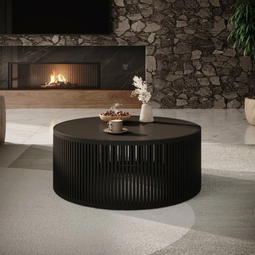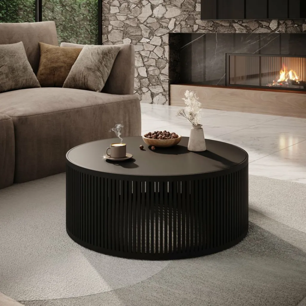 Salontafel Vanya is een ronde salontafel met een moderne uitstraling. De tafel heeft een diameter van 75 cm en staat op een metalen frame. Het tafelblad is gemaakt van een stevige spaanplaat constructie. Het meubel is volledig uitgevoerd in de kleur zwart.