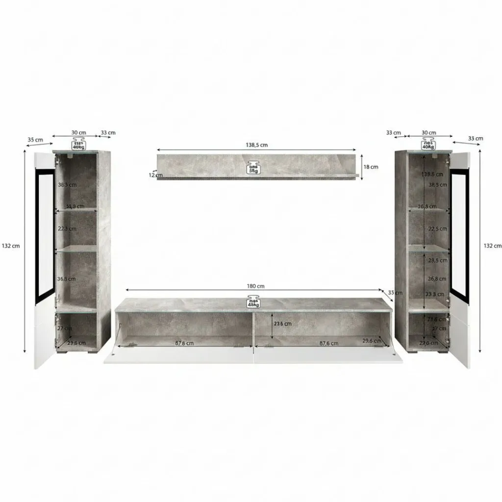 De kasten zijn aan de muur op te hangen. Toch liever een staand model? Dat kan ook, door eenvoudig de bijgeleverde pootjes te monteren onder de meubels. De pootjes zijn zilverkleurig, gemaakt van kunststof en hebben een hoogte van 2 cm.
