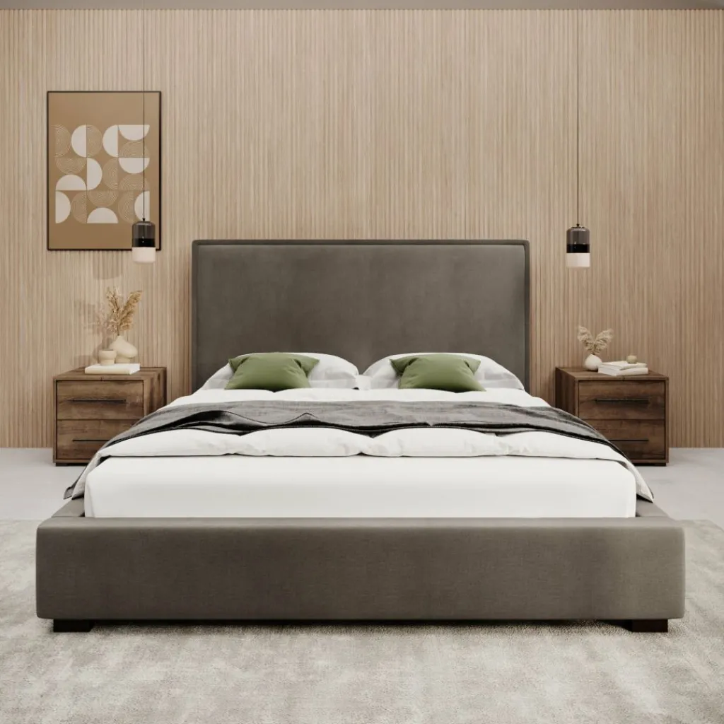 Het Veda tweepersoonsbed in velvet beige straalt luxe en comfort uit. De fluweelzachte stof geeft het bed een elegante uitstraling en voelt bovendien heerlijk zacht aan. De warme beige tint zorgt voor een rustige en sfeervolle basis in de slaapkamer, terwijl het hoge hoofdbord het geheel een stijlvolle finishing touch geeft.