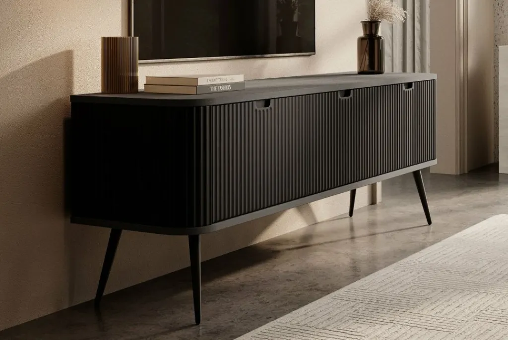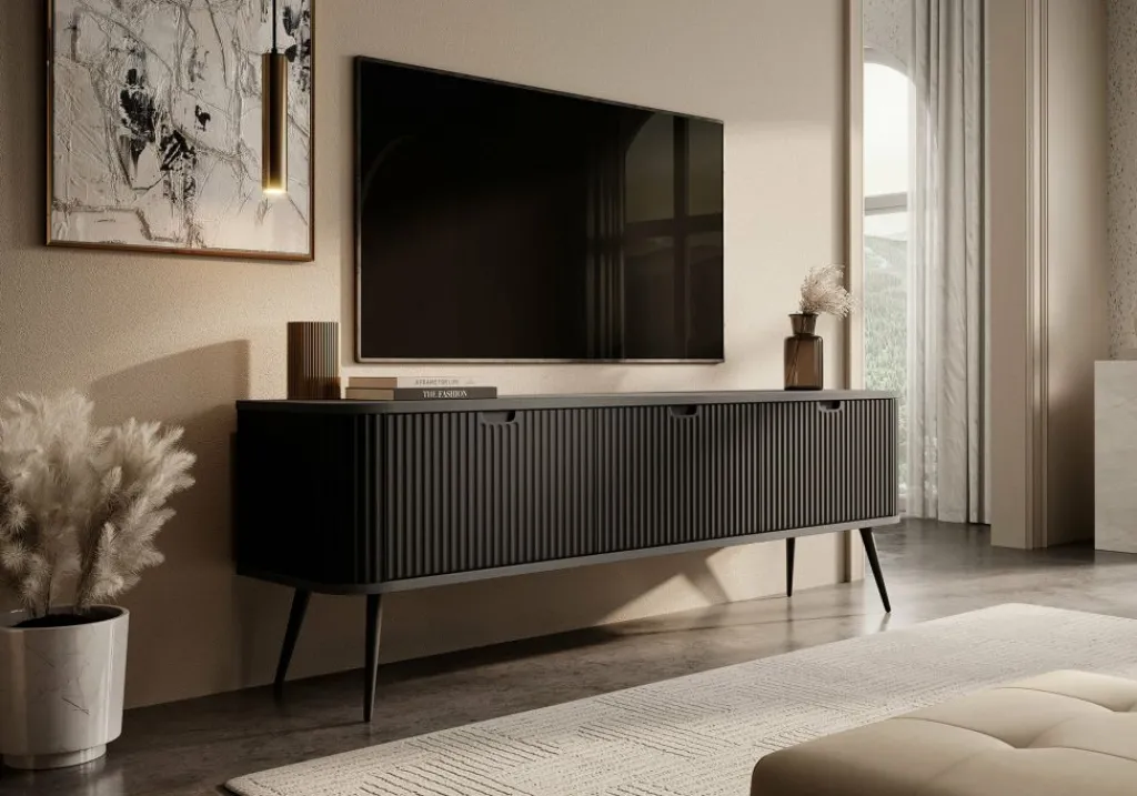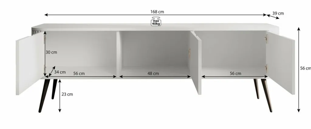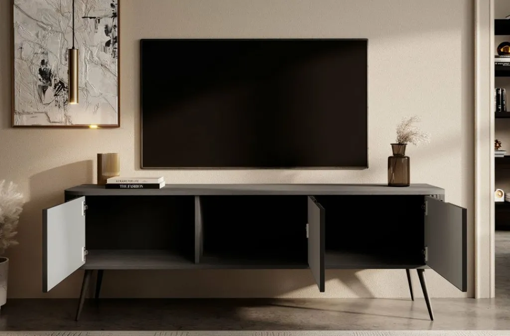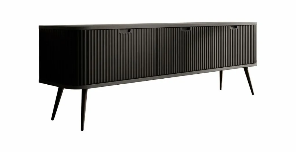 TV-Meubel Zakari beschikt over 3 deuren met daarachter 3 grote opbergvakken. Deze deuren zijn te openen met de inkeping die aan de bovenkant zit. De voor- en zijkant van de kast heeft een latten patroon waardoor het nog meer opvalt.