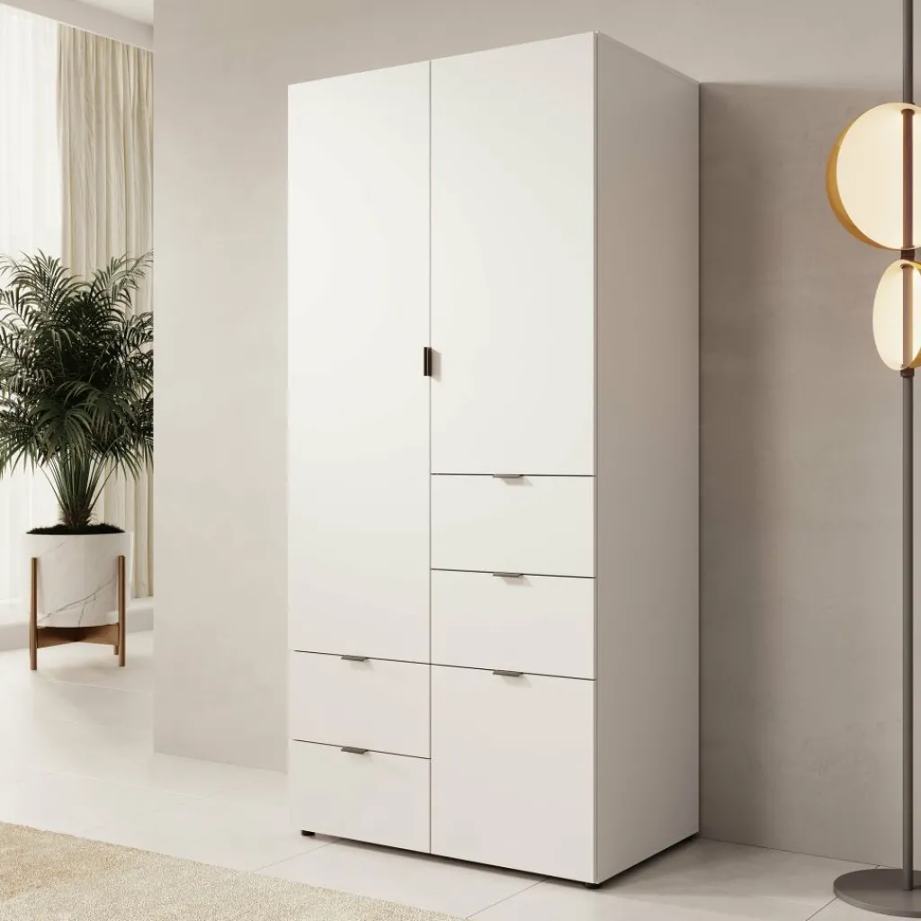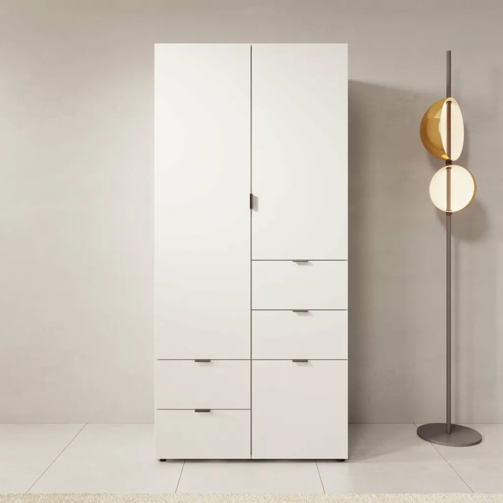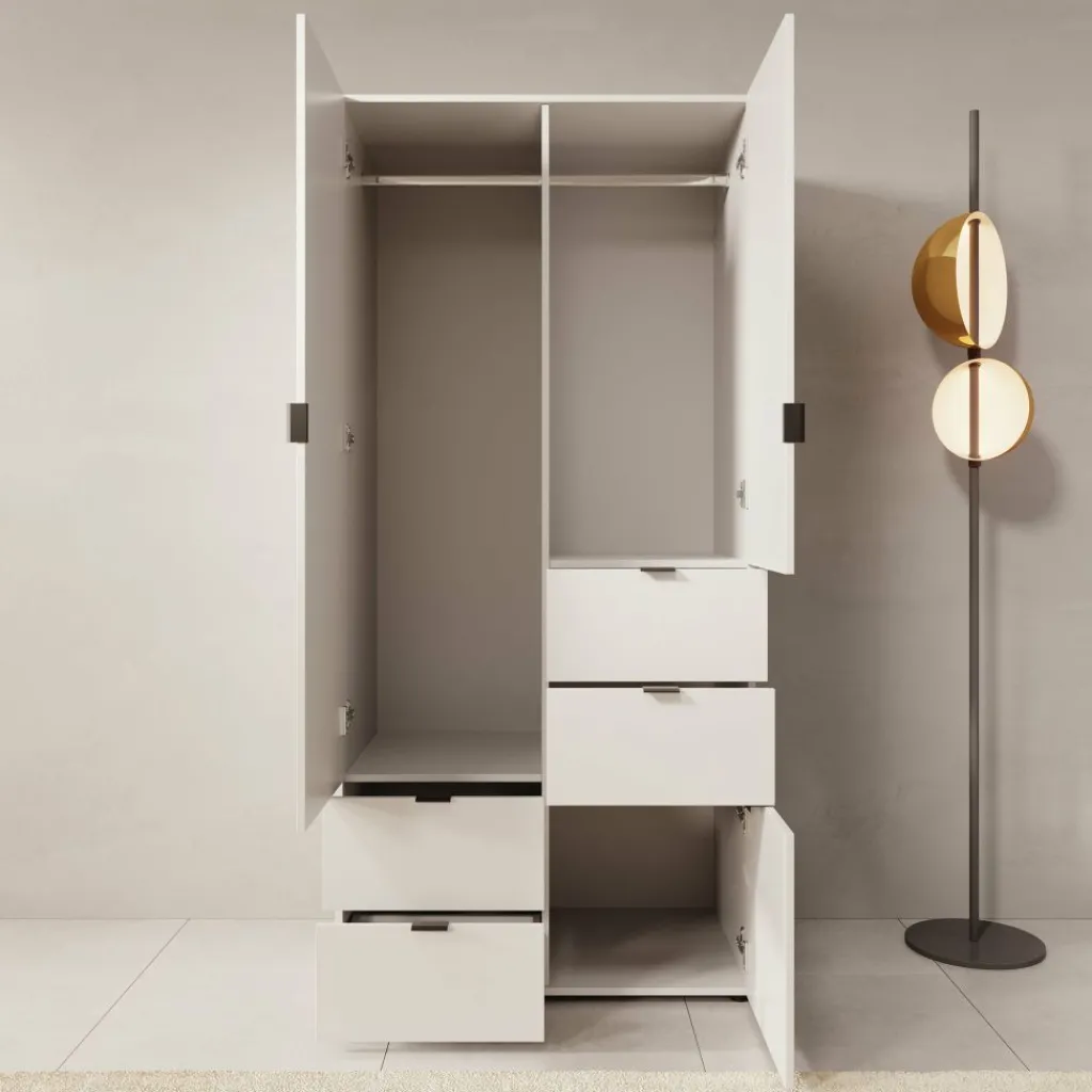 De Zayden kledingkast is een strakke en praktische toevoeging aan je slaapkamer. Met zijn moderne witte afwerking en minimalistisch design past hij moeiteloos in uiteenlopende interieurstijlen.